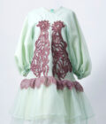 Elegant full-sleeve dress with peacock embroidery and a flowing gathered bottom.