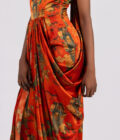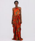 Drape bottom, sleeveless, high-neck.